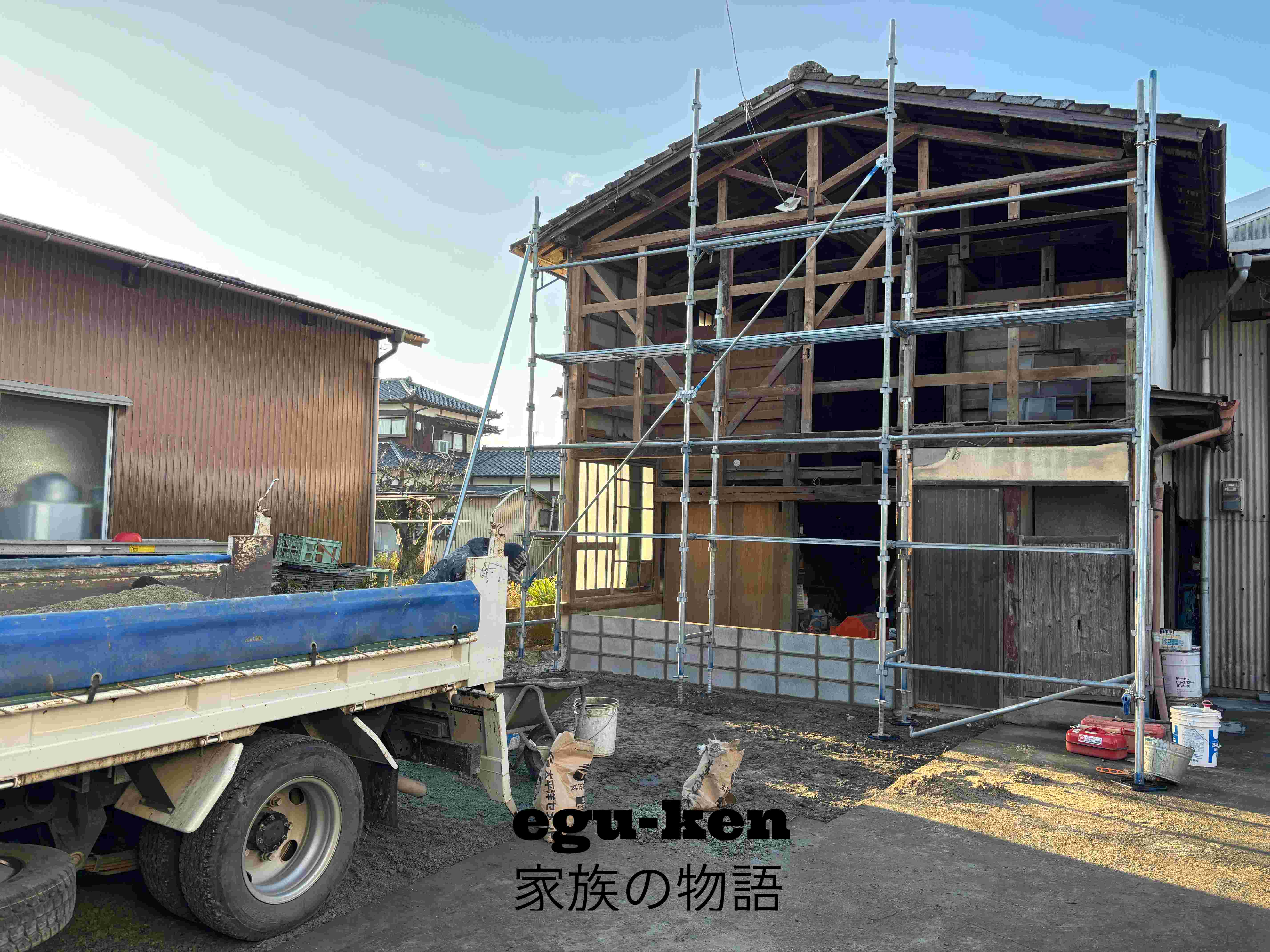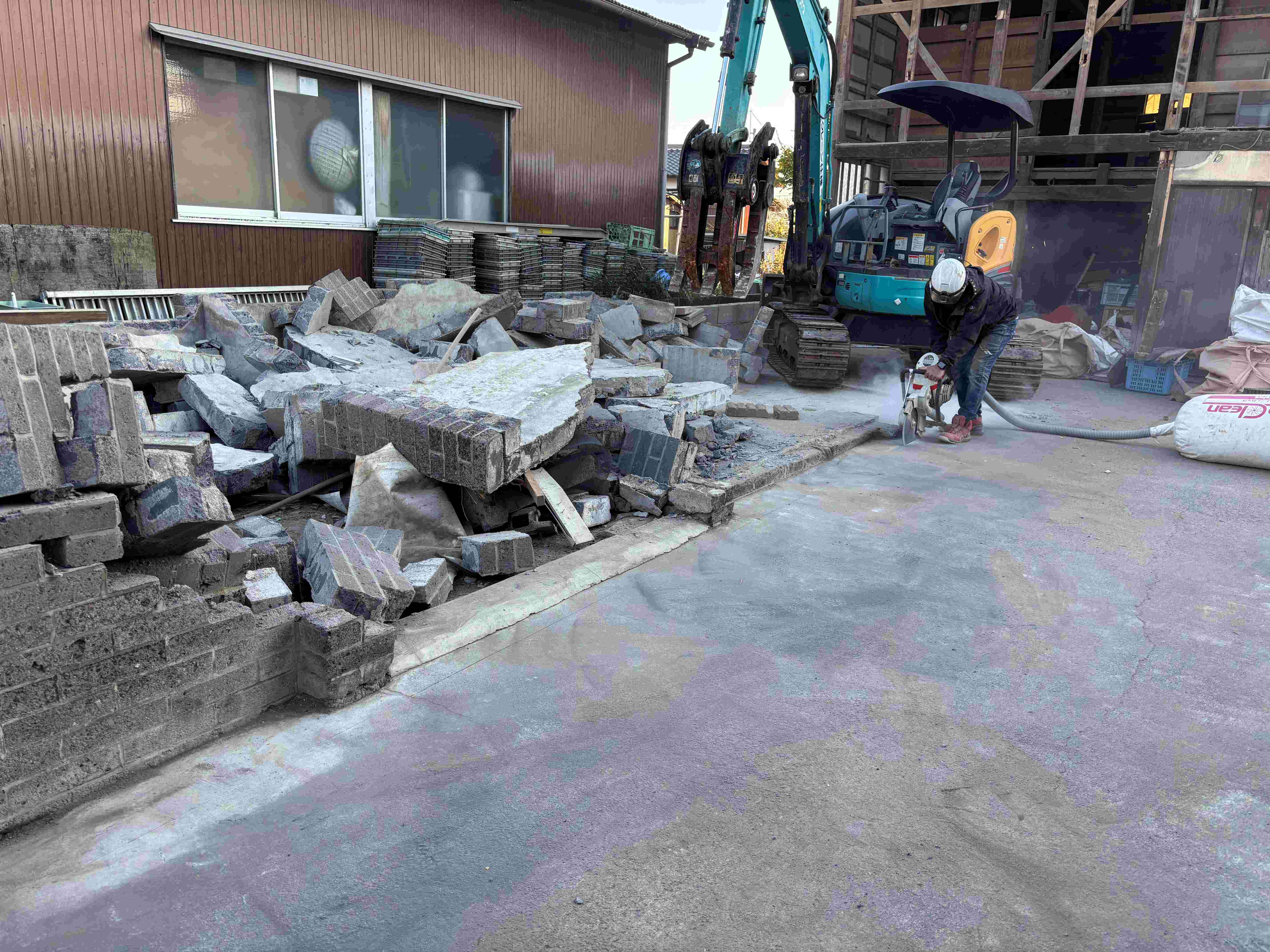 年前から施工中の倉庫の改修工事…土間の