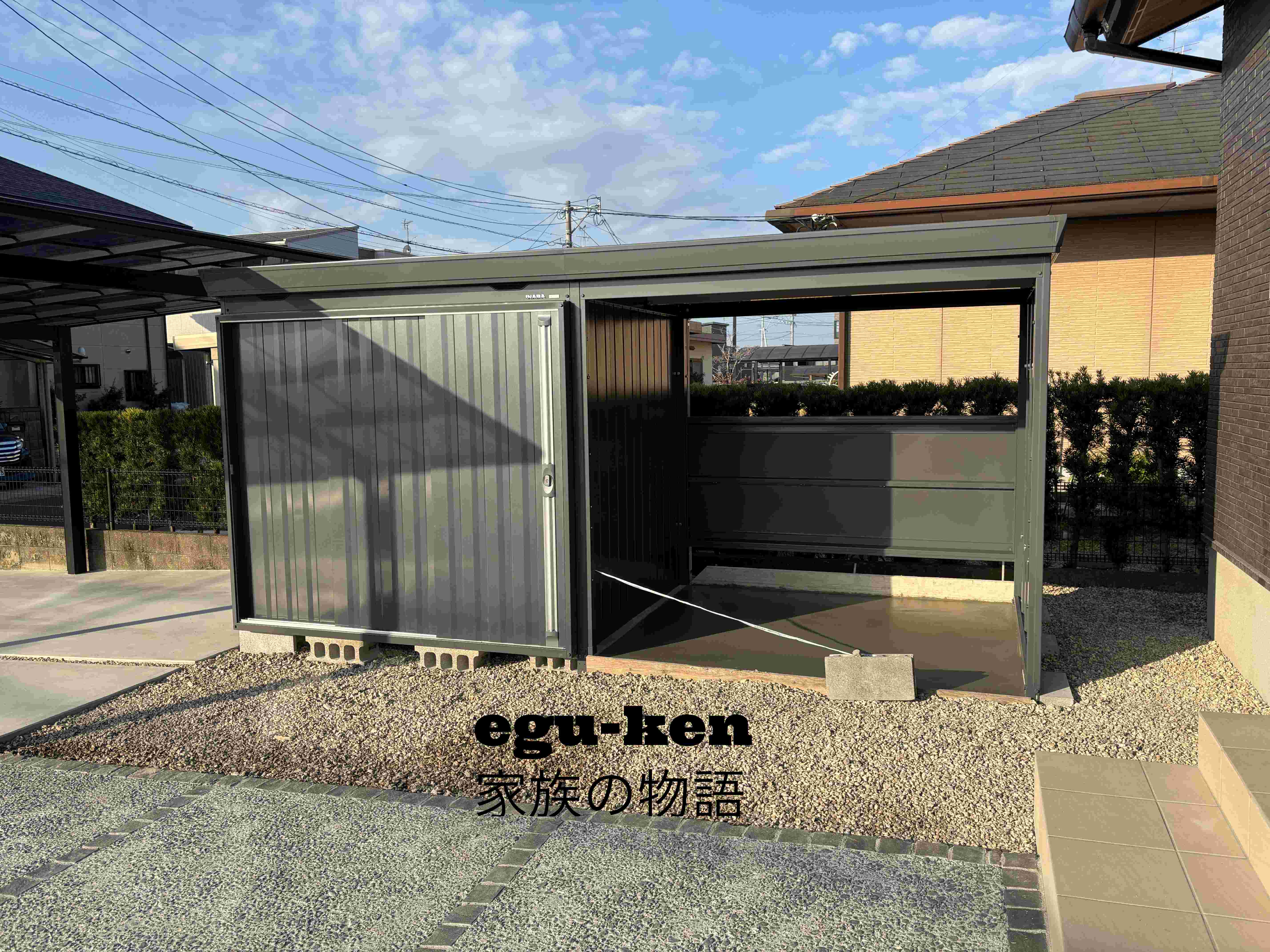 小さい物置+サイクルポートの設置完了しました。
