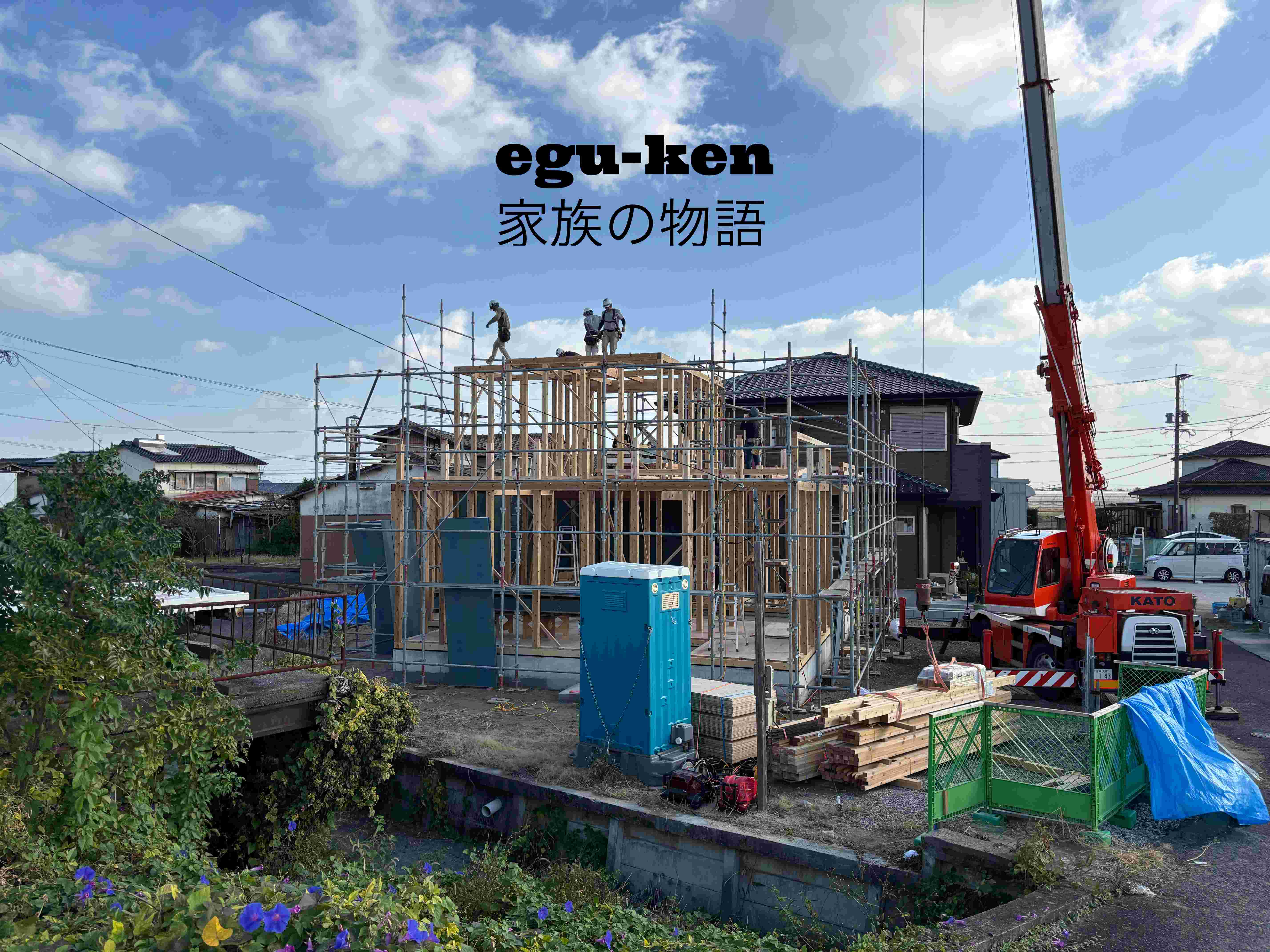 晴天の本日、無事上棟いたしました…YKM様朝から