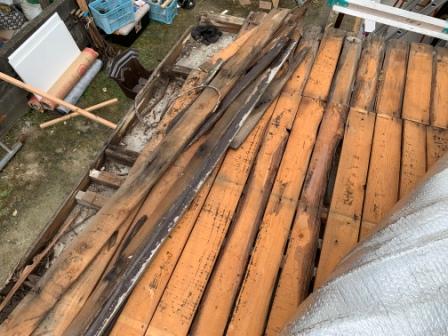 ↑屋根下地の傷みが激しいです… ↑大がかりな屋根替え工事です…