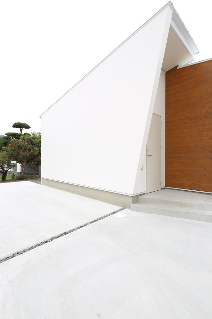 よくある切妻屋根の家もデザインによりカッコイイ外観を生み出します。大きな窓のないシンプルな外観とは対照的に、全ての部屋に中庭からの光が入り込み明るいお家です。