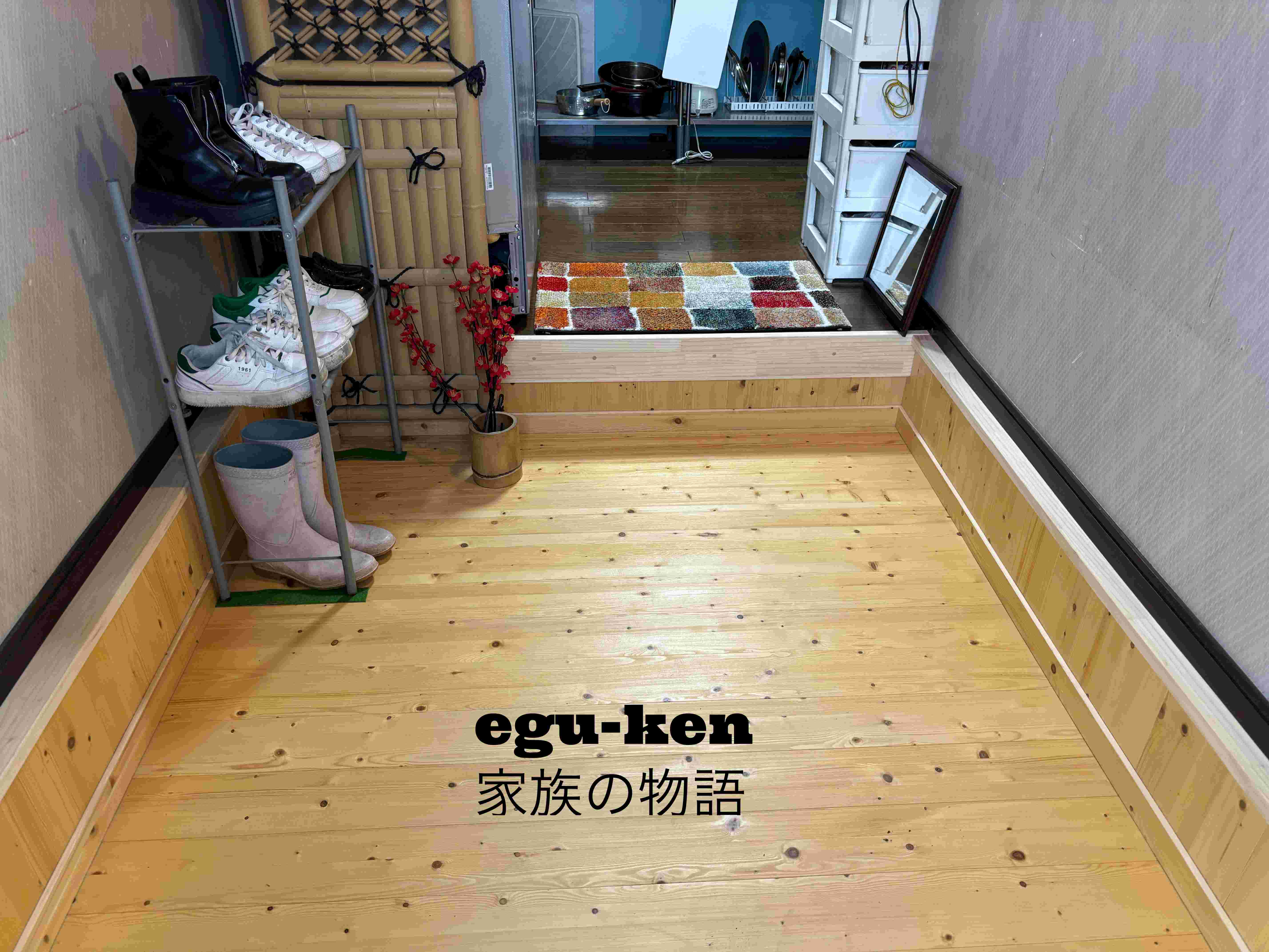 屋内の勝手口の拡幅工事完成しました。床にはパイン