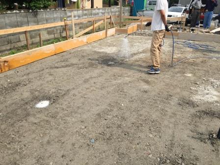 Y様借家新築工事の現場からです…シロアリ駆除剤をまいています…建物の木部だけでなく…現在の地盤(土壌)の処理まで行います…雨が心配ですが…予定通り進んでいま~す!!